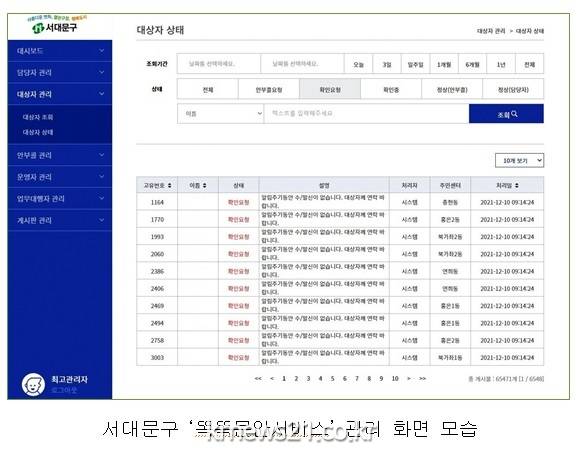 문석진 서대문구청장은 “코로나 상황이 지속되는 가운데 자신과 가족이 걱정되는 구민 분들은 가까운 동주민센터에 똑똑문안서비스 신청을 해 달라”고 말했다.