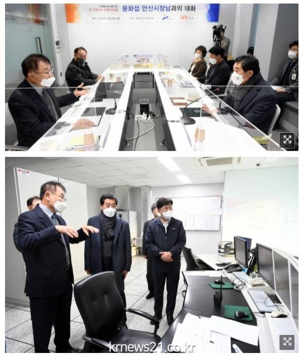 윤 시장은 지난 20일 이성재 대표이사 및 김영태 사장 등 임직원을 만나 코로나19 방역에 대한 적극적인 협조 당부와 함께 안산공장 생산설비 인근 공유부지 사용 허용에 대한 건의사항을 청취하는 등 자유로운 분위기에서 시정 전반에 대한 의견을 나눴다.