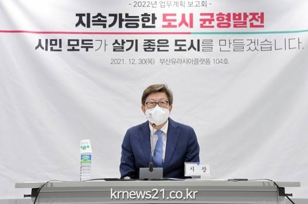 ▲ 사진=부산광역시부산시(시장 박형준)는 오늘(30일) 원도심인 부산역에 위치한 부산유라시아플랫폼에서 세 번째 일정으로 ‘지속가능한 도시균형발전’ 분야에 대한 2022년 업무계획 보고회를 개최했다고 밝혔다.