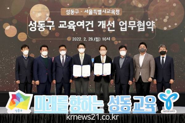 ▲ 사진=성동구서울 성동구(구청장 정원오)는 이달 28일 서울시교육청(교육감 조희연)과 손잡고 서울시 최초로 관내 교육여건 개선을 위한 업무협약을 체결한다. 이에 두 기관은 긴밀한 협력체계를 구축하여 지역적 교육 여건의 문제 인식을 같이하고 본격적인 해결 방안 마련에 나선다.