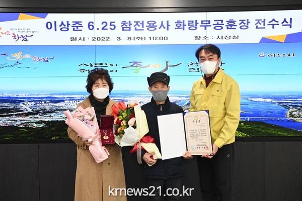 하남시(시장 김상호)는 지난 8일 6.25 전쟁에 참전해 무공을 세운 이상준 전 중위(94세)에게 화랑무공훈장과 훈장증을 전수했다.