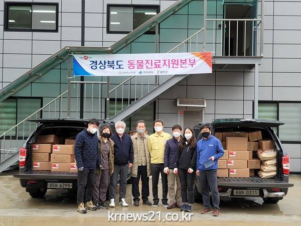 ▲ 사진=경상북도경상북도는 지난 8일부터 경북수의사회(회장 박병용)와 협력해 울진 산불로 인한 피해 동물(반려동물 및 가축)의 무상진료 및 치료를 위한 동물진료지원반을 긴급 구성해 운용하고 있다. 동물진료지원본부는 울진군농기계임대사업소북부지소(북면 박금소야로 448)에 설치되어있다.
