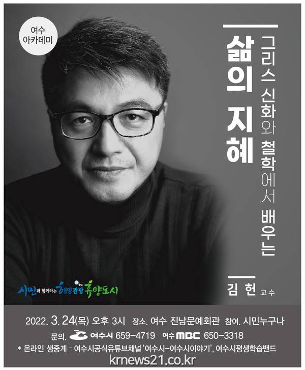 여수시가 오는 24일 오후 3시 진남문예회관에서 올해 첫 여수아카데미 시민교양강좌를 개최한다.