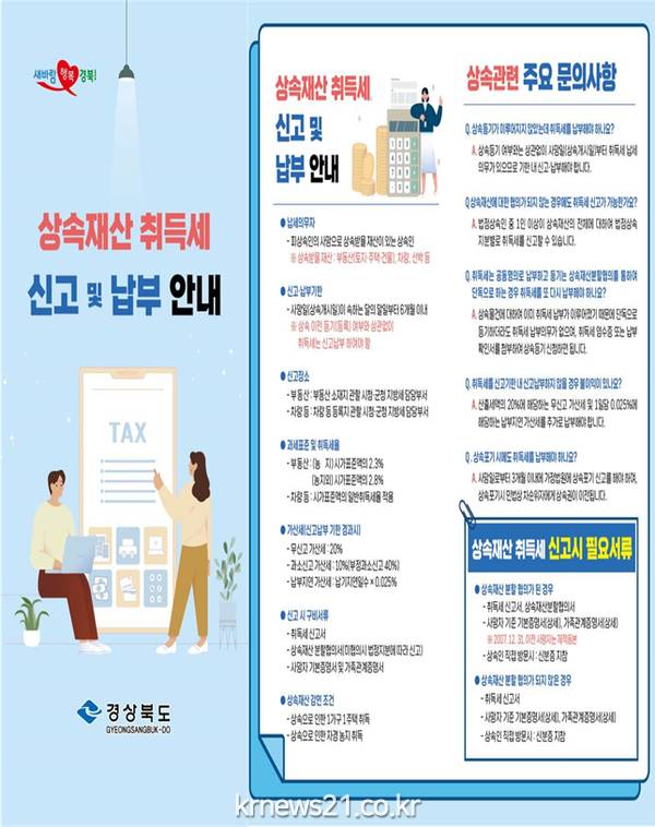 ▲ 사진=경상북도경상북도는 상속재산에 대한 취득세 자진 신고납부를 유도하고 누락세원을 방지하기 위하여 상속 취득세 관리를 강화한다고 밝혔다.