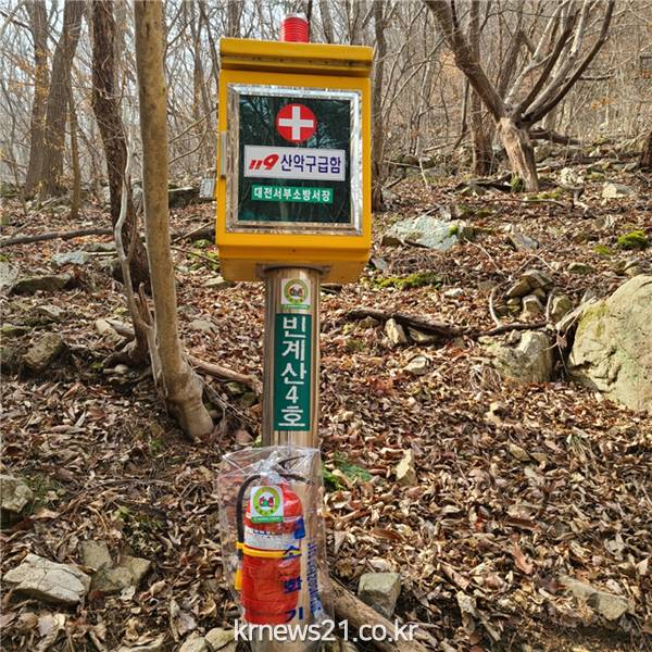 시민들이 많이 이용하는 등산로 눈에 띄는 119산악구급함 밑에 설치되어 산불 발생시 신속한 대응은 물론 산불조심 예방 및 경각심 제고 등 홍보 역할도 톡톡히 할 것으로 기대된다.