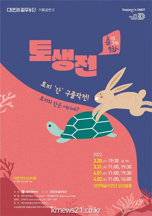 ▲ 사진=대전광역시대전시립무용단의 어린이를 위한 공연 ‘춤으로 그리는 동화 – 토생전’이 오는 3월 30일(수)부터 4월 2일(토)까지 4일간 대전예술의전당 앙상블홀에서 펼쳐진다.