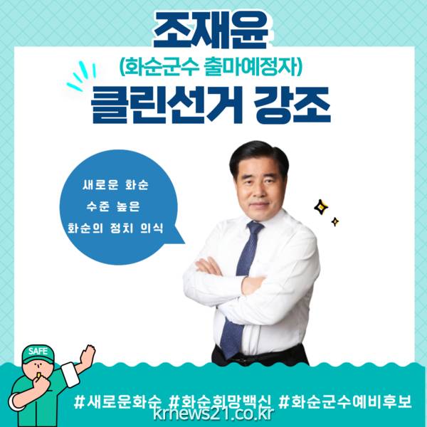 2022년 3월 25일 조재윤 화순군수 예비후보는 다가오는 지방선거에서 선거문화의 변화를 위해 모든 후보들이 클린 선거를 치르자고 발표 하였다