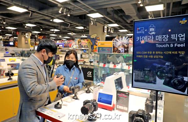 카메라 옴니 서비스 대상 상품은 SSG닷컴 검색 시 ‘매장픽업’ 태그로 구분할 수 있으며, 구매 후 이마트 방문 수령은 구매 다음날부터 이틀 간 10~23시 내 원하는 시간대에 가능하다.