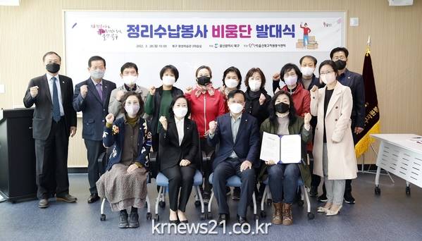 ▲ 사진=울산광역시 북구울산 북구자원봉사센터는 28일 정리수납전문봉사단 '비움단'과 퇴직자 재능기부 봉사단 '금손봉사단' 발대식을 열었다.