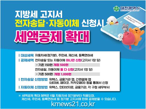 ▲ 사진=대전광역시대전시는 지방세 납세편의 제고 및 과세행정 효율성 도모를 위해 지방세 전자송달과 자동이체 신청자에 대한 세액공제를 확대한다고 밝혔다.