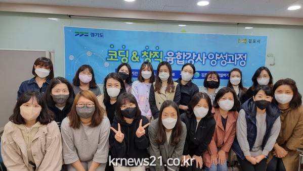 ▲ 사진=김포시김포시는 지난 18일 교육강사 및 훈련생 등 20여명이 참석한 가운데 김포새일센터 2022년 직업교육훈련 과정인 [코딩&창직 융합강사 양성과정]을 개강했다.
