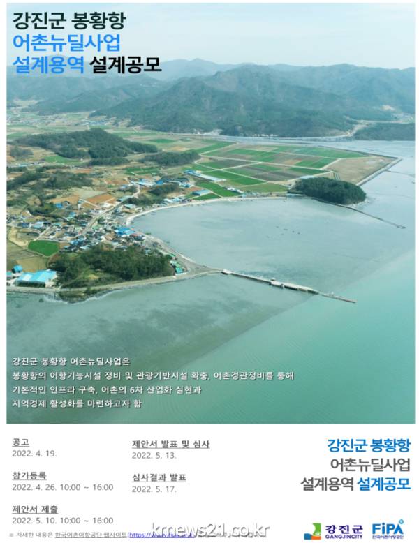 ▲ 사진=강진군한국어촌어항공단(이사장 박경철, 이하 공단)이 지난 19일 ‘강진군 봉황항 어촌뉴딜사업’ 조경, 경관 분야 설계용역 설계 공모를 공고했다고 밝혔다.