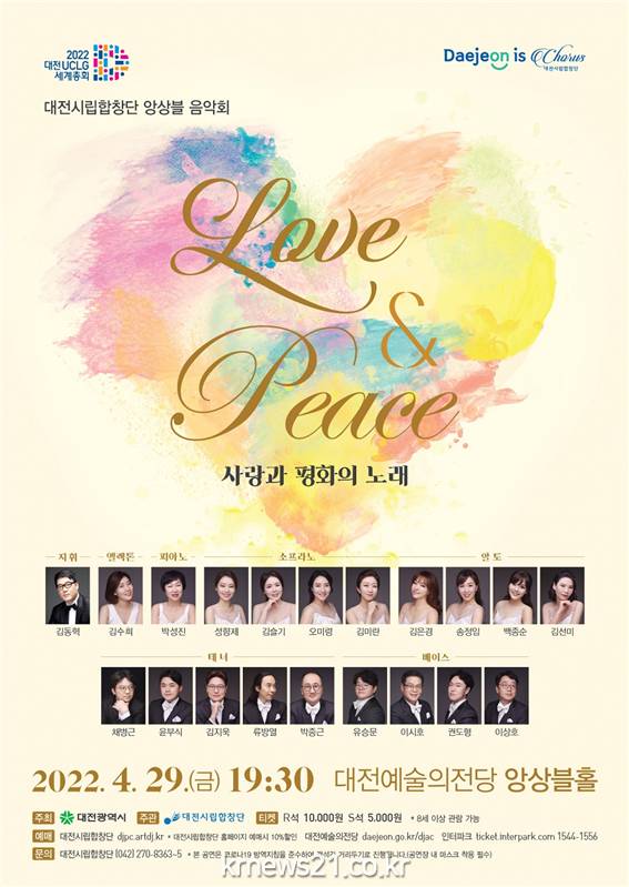 ▲ 사진=대전광역시대전시립합창단 앙상블 음악회‘사랑과 평화의 노래’가 4월 29일 금요일 오후 7시 30분 대전예술의전당 앙상블홀 무대에 오른다.