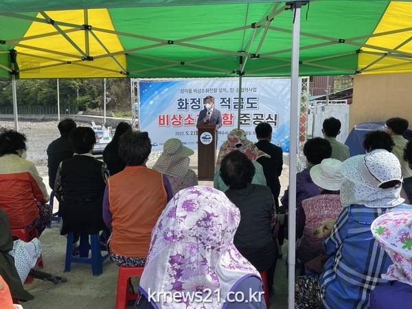 여수시가 민관협력사업으로 화정면 적금도에 ‘섬마을 비상소화전함’을 설치하고 지난 2일