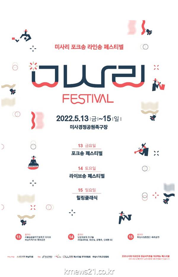 한국예총 하남지회가 주최·주관하고 하남문화재단, 하남도시개발공사, 미사리페스티벌조직위원회, 하남시기독교연합회 후원으로 진행되는 이번 행사는 5월 13일부터 15일까지, 3일간 미사경정공원 족구장 특설무대에서 포크송을 주제로 펼쳐진다.