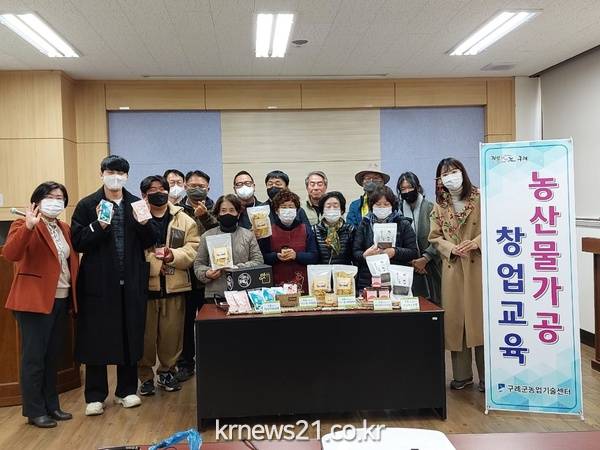전남 구례군은 지난 7일 농산물 가공 창업교육을 이수한 수료생 12명이 참여한 가운데 ‘2022년 농산물 가공 창업교육 수료식’을 가졌다.