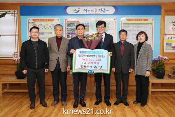 김 군수는 26일 첫 기탁식을 갖고 장흥군인재육성장학회에 500만원을 전달했다.