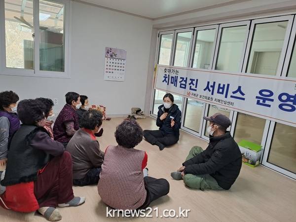 전남 구례군은 고령화 시대에 사회적 문제로 대두되고 있는 치매를 조기에 발견하여 중증 상태로의 진행을 억제하거나 증상을 개선하기 위해 만 60세 이상 어르신을 대상으로 찾아가는 치매검진 서비스를 1월 5일부터 실시하고 있다고 밝혔다.