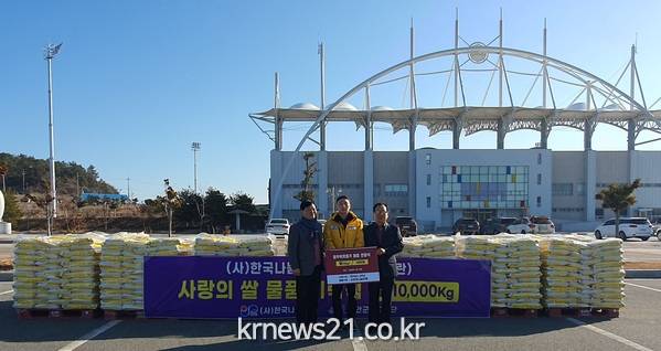 (사)한국나눔연맹(이사장 안미란)은 지난 12일(목) 신안군 저소득계층을 위해 3,000만원 상당의 사랑의 쌀 10kg 1,000포를 기탁했다.