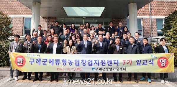 ▲ 구례군, 체류형농업창업지원센터 7기 입교식 개최전남 구례군은 지난 7일 체류형농업창업지원센터 대강당에서 체류형농업창업지원센터 7기 교육생 입교식을 개최했다.