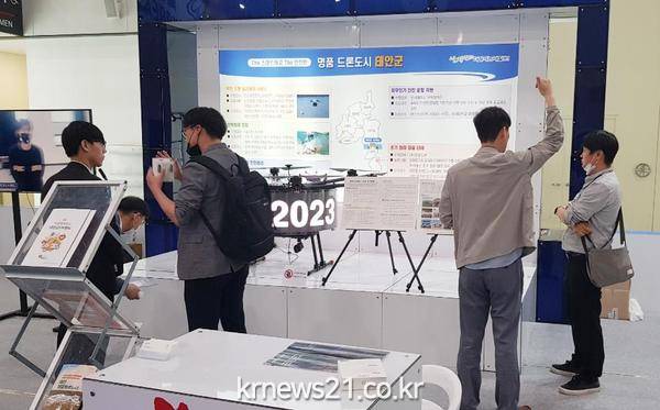 이번 박람회에서 군은 태안형 드론 실증도시 구축 사업과 태안군UV랜드를 홍보하고 올해 여름 해수욕장에 실제 투입될 예정인 세이에어의 ‘SAY DRONE-L01’을 전시해 방문객들의 눈길을 끌었다.