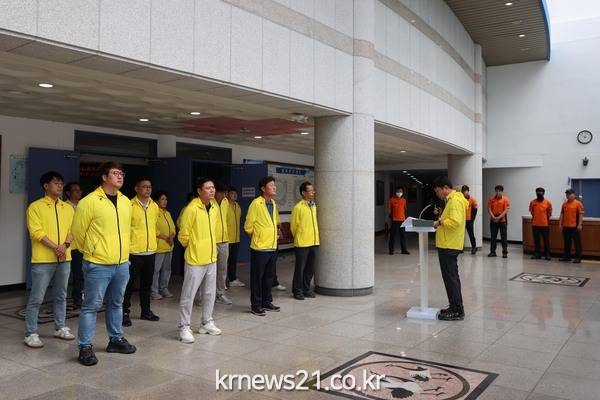 동구청제공[뉴스21일간=임정훈]울산 동구(구청장 김종훈)는 동구 안전보안관(대표 고이곤)과 함께 11월 6일 오전 10시 전하2동 행정복지센터 회의실에서 동구생활안전체험센터의 ‘찾아가는 심폐소생술 교육’을 체험하고 동울산종합시장 일원에서 동절기 대비 화재예방 캠페인을 실시하였다. 동구는 동절기 급성 심혈관질환의 위험이 높...
