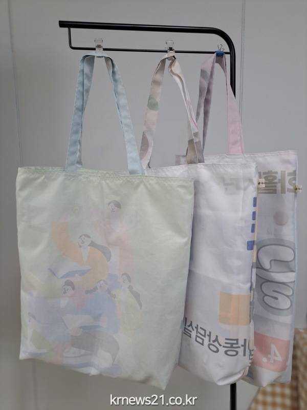 특히 주민 자원봉사자의 재능기부를 통해 매월 2회, 첫째 주와 셋째 주 월요일에 운영하고 있는 재봉틀데이에는 폐현수막을 활용하여 양면으로 사용할 수 있는 장바구니를 만들 수 있다.
