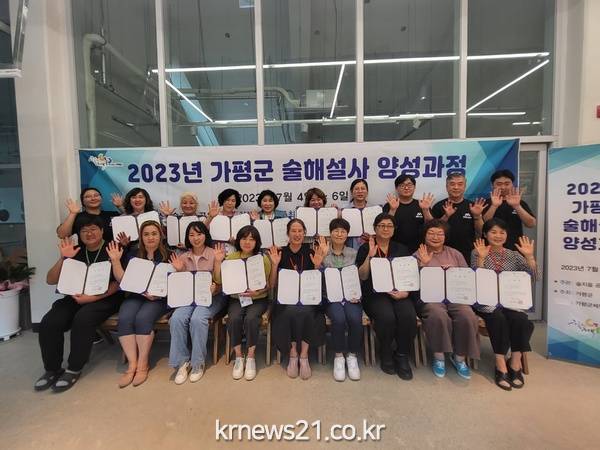 14일 가평군에 따르면 군의 자산인 술․관광․테마를 활용해 새로운 일자리 창출과 농촌체험 프로그램 개발 활성화를 위해 술 해설사 양성과정(기초)교육을 진행해 수료생 17명을 배출했다고 밝혔다.