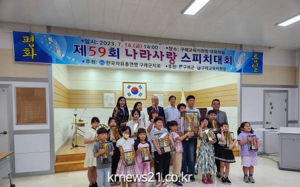 ▲ 한국자유총연맹 구례군지회, 제59회 나라 사랑 스피치 대회 성료한국자유총연맹 구례군지회는 지난 14일 구례교육지원청 대회의실에서 제59회 나라 사랑 스피치 대회가 성황리에 열렸다고 밝혔다.