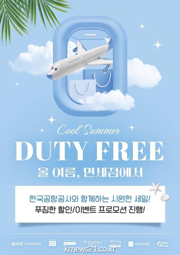한국공항공사(사장 윤형중)는 여름 휴가철을 맞이해 5개 국제공항에 입점한 8개 면세점과 공동 할인 프로모션을 진행한다.
