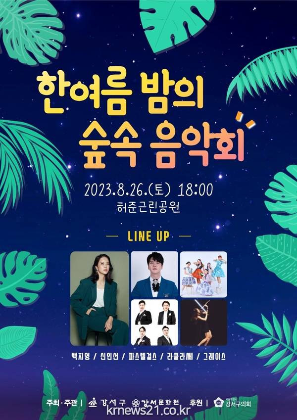 서울 강서구는 강서문화원과 함께 2023 한여름 밤의 페스티벌 ‘한여름 밤의 숲속 음악회’를 개최한다고 밝혔다.