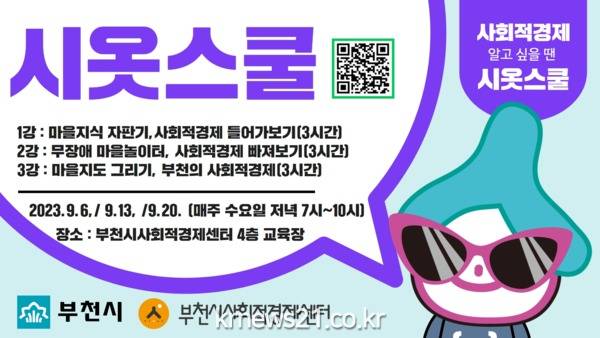 부천시(시장 조용익)는 부천시민 및 부천시 소재 기업 또는 학교 임직원 및 학생을 대상으로 ‘사회적경제 시옷스쿨 제4기 수강생’을 오는 9월 5일까지 모집한다.