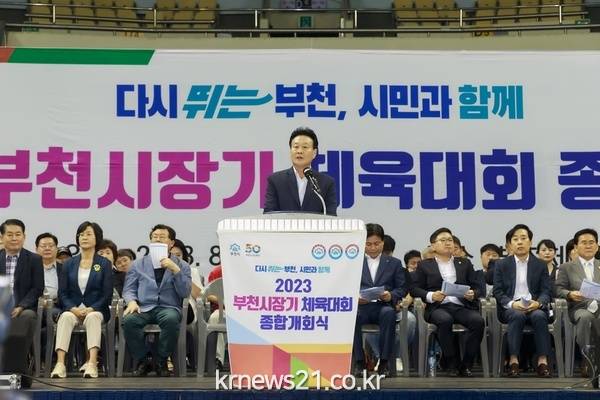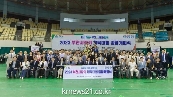 최성운 부천시의회 의장은 지난 27일, 부천체육관에서 열린 2023년 부천시장기 체육대회 종합개회식에 참석해 축하와 격려의 말을 전했다.