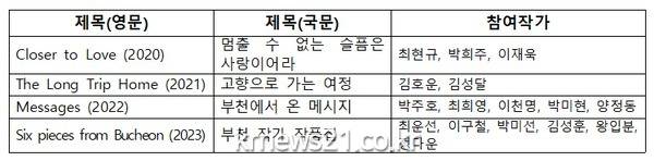 시는 2020년부터 시작된 한국문학번역사업을 통해 매년 한국 및 부천 작가들의 작품을 모아 발행했으며 작품으로는 ▲부천 문인 3선 ‘클로저 투 러브(Closer to Love): 멈출 수 없는 슬픔은 사랑이어라’ ▲디아스포라 주제 ‘(더 롱 트립 홈)The Long Trip Home : 집으로 가는 여정’ ▲부천 문인 5선 ‘메시지) Messages : 부천에서 온 메시지’ 등을 출간했다.