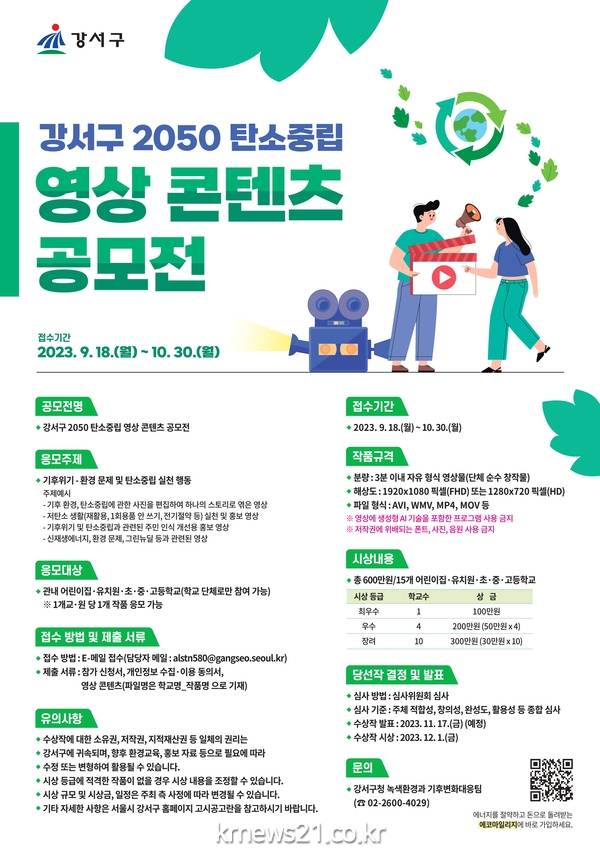 서울 강서구가 ‘2050 탄소중립 영상 콘텐츠 공모전’을 개최, 기후위기 극복을 위한 아이디어를 모은다.