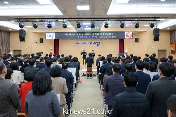 순천시(시장 노관규)는 2일 2024년 새해 시정 업무를 시작하는 시무식에서 간부공무원 등 직원 200여 명이 참석한 가운데 반부패·청렴실천 다짐 결의대회를 가졌다.