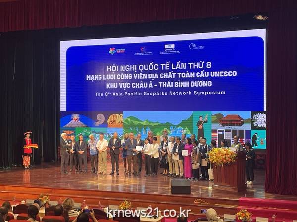 포천시(시장 백영현)는 지난 8일부터 15일까지 베트남 까오방에서 열린 ‘제8회 아시아-태평양 지질공원 네트워크(APGN) 총회’에서 한탄강 지질공원의 유네스코 세계지질공원 재지정서를 교부받았다고 19일 전했다.