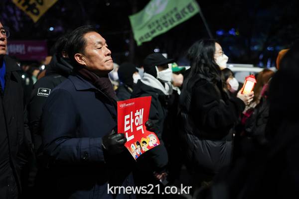 (사진 : 이재준 수원시장이 7일 국회의사당 앞에서 시위에 참석한 모습.)