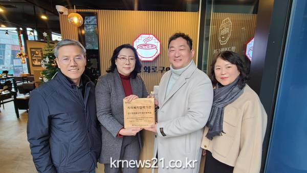 기흥구 동백3동 지역사회보장협의체(위원장 곽근배)는 12일 압구정화로구이 용인동백점을 동백3동 지역복지협력기관 6호로 인증하고 현판을 전달했다. 압구정화로구이 용인동백점(대표 신성범)은 지난 3월부터 매달 마지막주 토요일마다 어려운 이웃 10명을 초청해 점심 식사를 대접하고 있다.