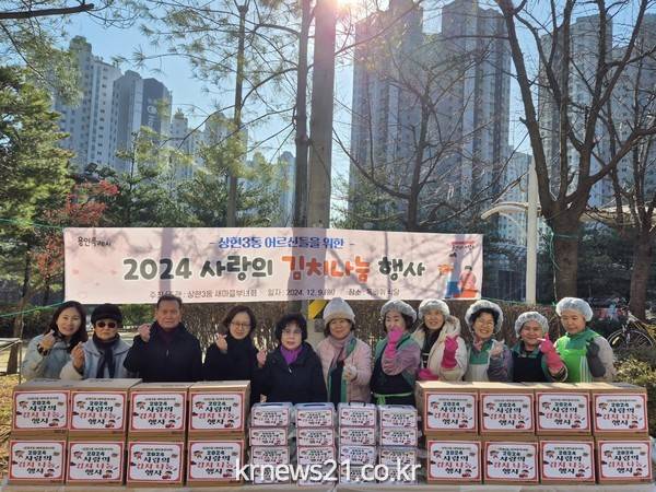 수지구 상현3동 새마을부녀회(회장 오애자)는 9일 독바위 식당에서 김치나눔 행사를 진행했다. 이날 담근 300kg의 김치는 어르신 32가구에 전달됐다.