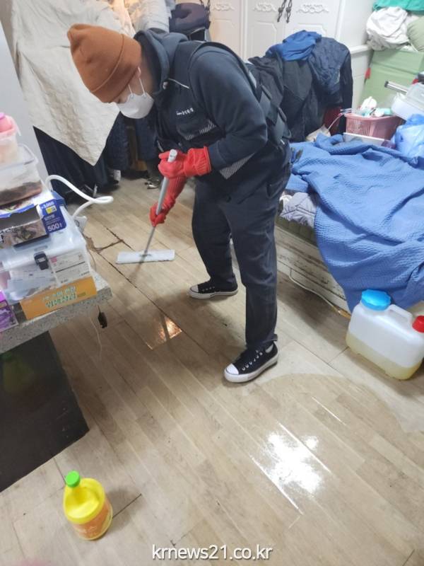 처인구 역북동 지역사회보장협의체는 12일 청소업체 동방환경인더스트리(대표 한현수)와 함께 심한 장애가 있는 1인 가구의 집을 방문해 실내공간을 청소하고 소독했다. 협의체는 동방환경인더스트리와 지난 11월 협약을 맺고 매월 1가구 집청소 봉사에 나서고 있다.