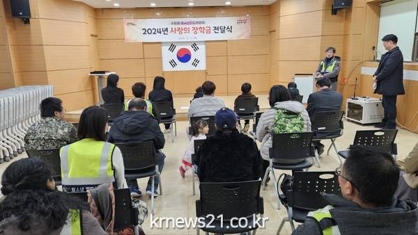 처인구 유림동 청소년지도위원회는 12일 사랑의 장학금 전달식을 열었다. 위원회는 지역의 저소득 청소년 5명에게 20만원씩 총 100만원을 전달하고, 어려운 이웃에게 전해달라며 쌀 10kg 10포를 기탁했다.