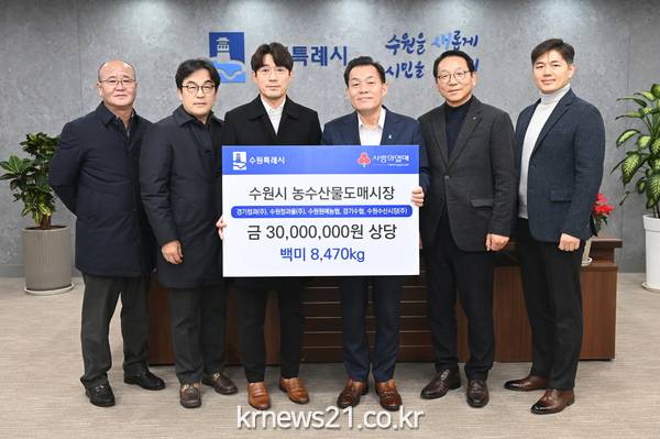 이재준 수원시장은 “어려움을 겪는 이웃을 위해 따뜻한 나눔을 실천해 주신 수원시 농수산물시장 도매법인 관계자분들께 감사드린다”고 말했다.