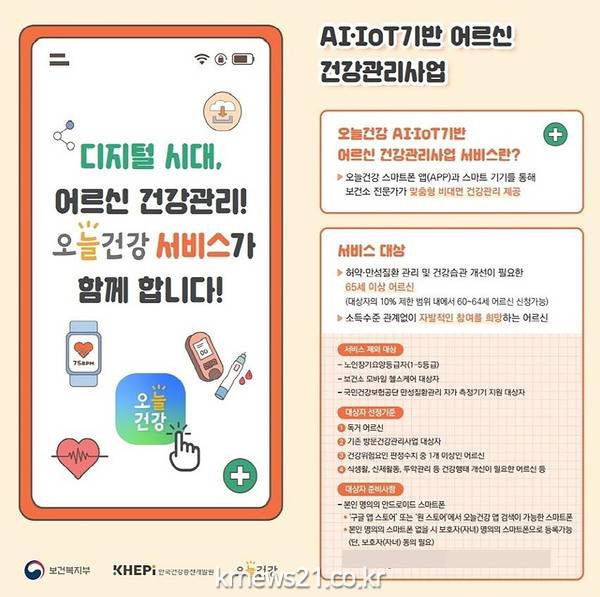 이 사업은 스마트폰 앱 ‘오늘 건강’과 스마트기기를 통해 간호사, 물리치료사, 영양사 등 각 분야 건강 전문가들이 6개월간 비대면으로 대상 노인에 맞춤형 건강관리를 해주는 서비스다.