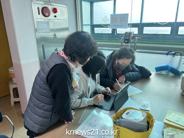보건소 간호사가 앱을 통해 담당 어르신이 건강 미션을 잘 수행하고 있는지를 수시 확인하고, 필요시 전화로 독려한다.