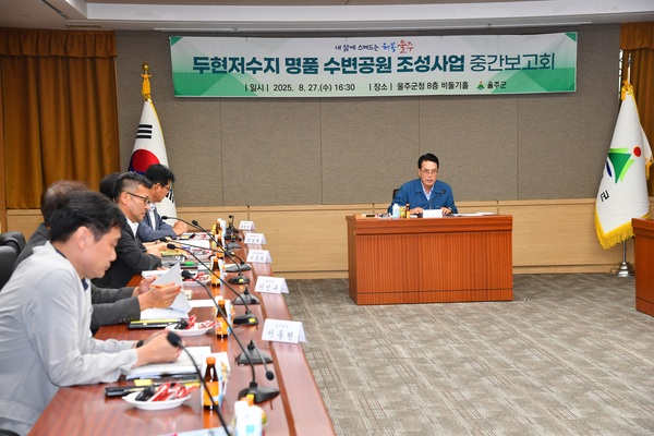 (뉴스21일간/최원영기자)=울산 울주군이 27일 군청 비둘기홀에서 이순걸 울주군수와 관계 공무원 등이 참석한 가운데 ‘두현저수지 명품 수변공원 조성사업 실시설계용역’ 중간보고회를 개최했다.