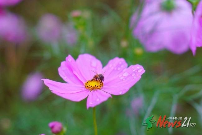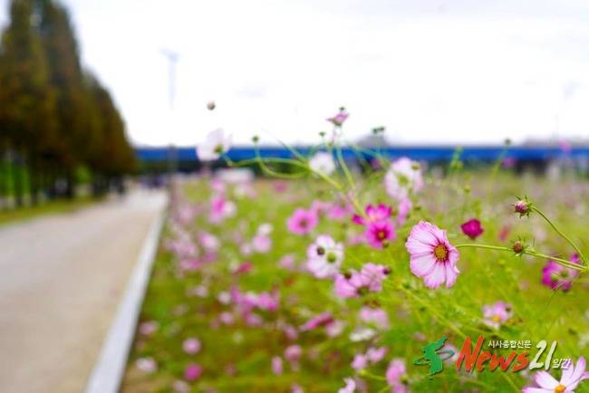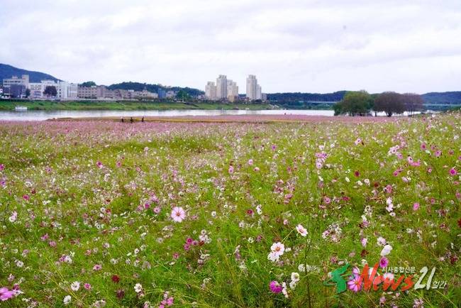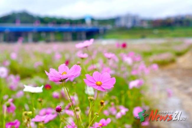 코스모스는 국화과 한해살이식물로 높이가 1~2m까지 바로 서며 많은 가지가 있다. 잎은 마주나고 침소형이다. 꽃은 6~10월에 가지와 원줄기 끝에 1개씩 피며 꽃잎은 8개로 연한 홍색, 흰색, 연분홍색 등 다양한 색깔로 핀다. 관상가치가 있어 가로변 또는 넓은 평야에도 군락으로 심는다.