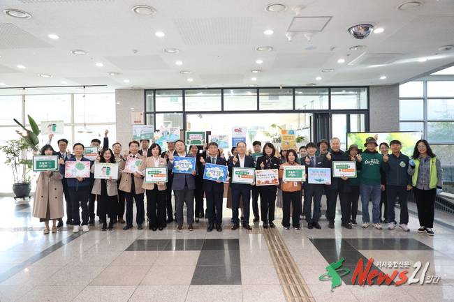 [뉴스21일간=이준수 기자]  울산광역시교육청(교육감 천창수)은 30일 오전 8시부터 청사 정문과 후문, 1층 중앙 현관에서 전 직원을 대상으로 ‘환경친화적 청사 만들기 홍보 활동(캠페인)’을 펼쳤다.       이번 행사는 기후 위기에 대응해 지속 가능한 미래를 실현하는 교육청의 친환경 정책에 모든 직원이 함께 참여하도록 독...
