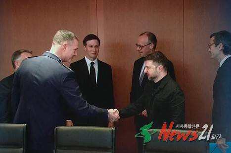 ▲ 사진=KBS뉴스영상캡쳐우크라이나 대통령 젤렌스키와 미국 트럼프 대통령 특사 위트코프가 현지시각 14일, 메르츠 독일 총리 중재로 베를린에서 회동했다.