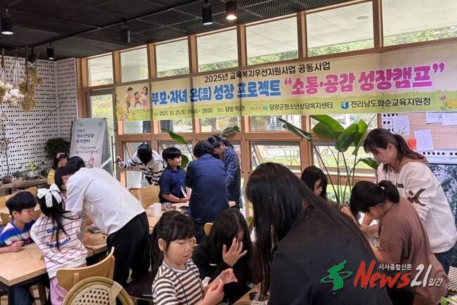 담양군청소년상담복지센터와 전라남도화순교육지원청은 ‘2025년 교육복지우선지원 공동사업’의 하나로 지역 내 위기(가능) 초등학생 가정을 위한 ‘부모-자녀 온(溫) 성장 프로젝트’를 담양 먹감촌에서 진행했다.